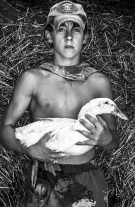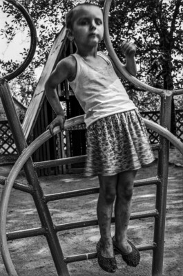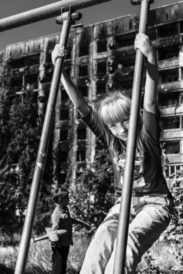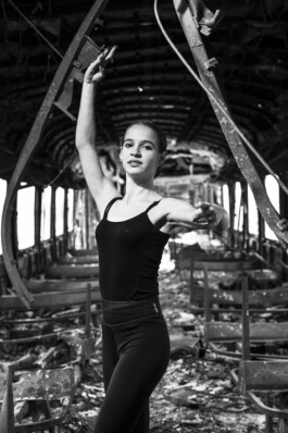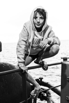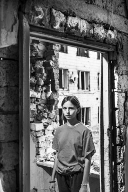 Olesya, 12 years old perched on a stranded ship. Mariupol 2023