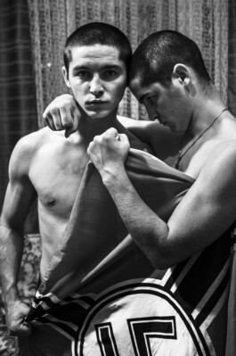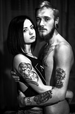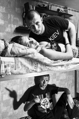 A skinhead with his girlfriend in their university residence. Kiev 2011
